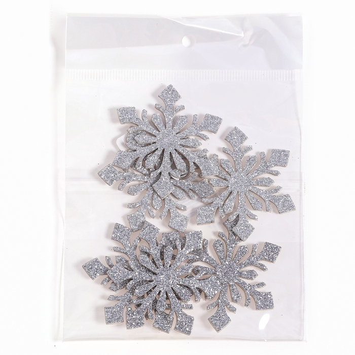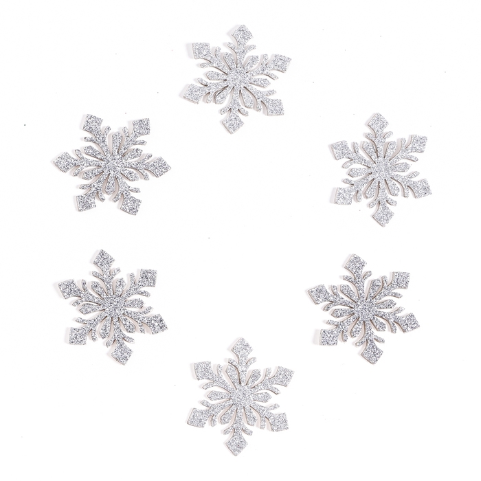 Новый год! Декор «Снежинки» на клеевой основе, набор 6 шт., цвет серебро