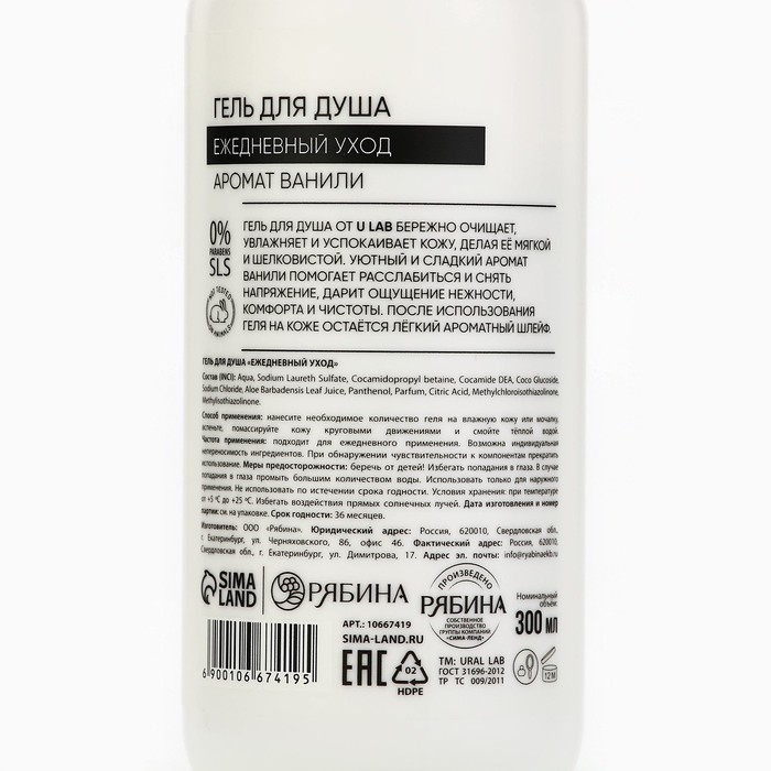 Гель для душа, ежедневный уход, 300 мл, аромат ванили, U LAB