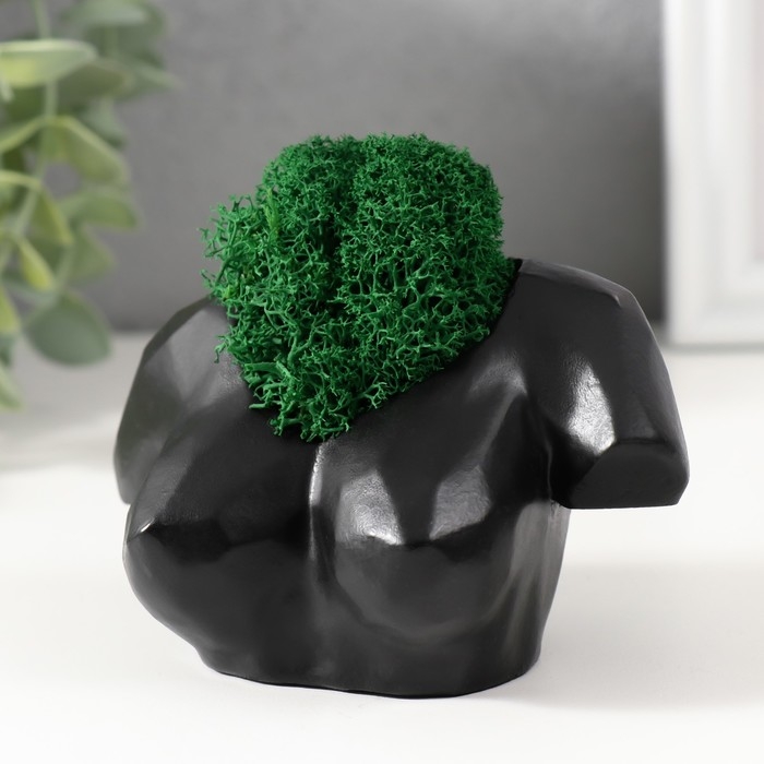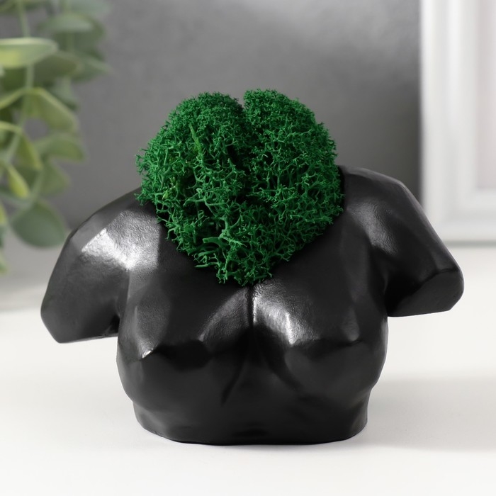 Кашпо бетонное "Бюст" со мхом 6,5х11см черный (мох зеленый стабилизированный)