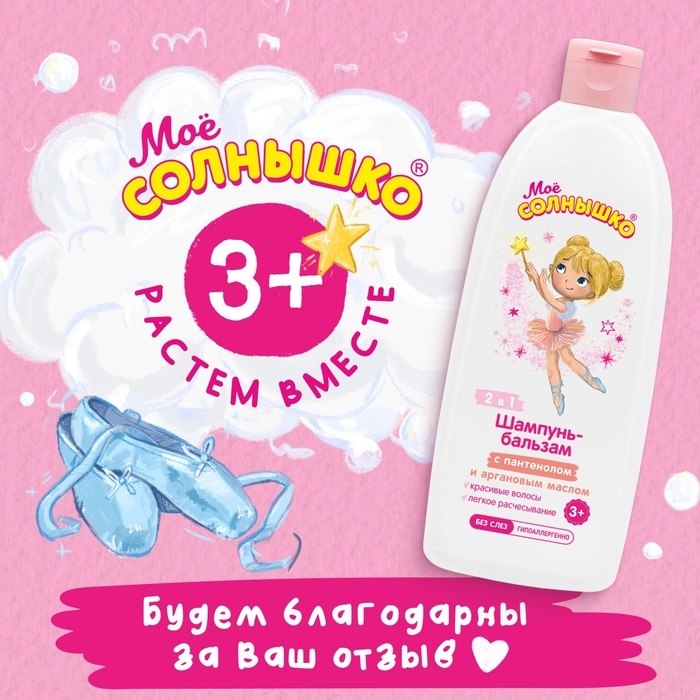 Шампунь-бальзам детский Мое солнышко с пантенолом и аргановым маслом, 400 мл