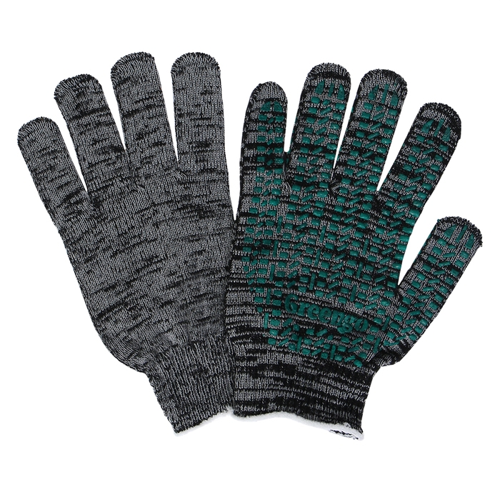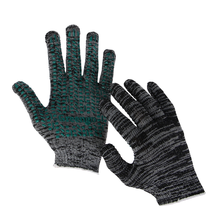 Перчатки садовые, хб, вязка 10 класс, 5 нитей, размер 9, с ПВХ точками, серые, Greengo