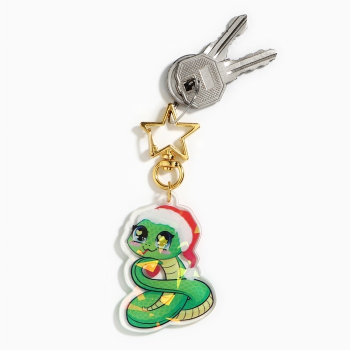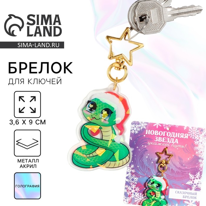 Брелок новогодний, для ключей, голографический «Новогодняя звезда» 3.6 х 9 см