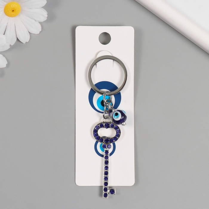 Брелок от сглаза металл "Ключ с камушками" 2,4х6,5 см
