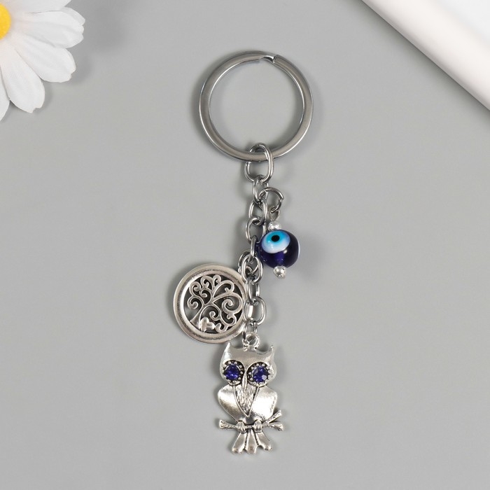 Брелок от сглаза металл "Сова с деревом" 7,5 см
