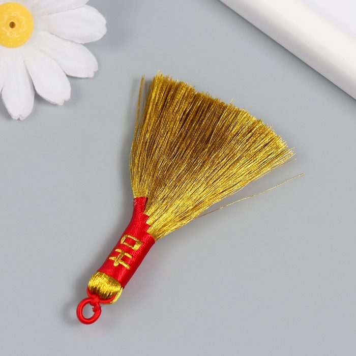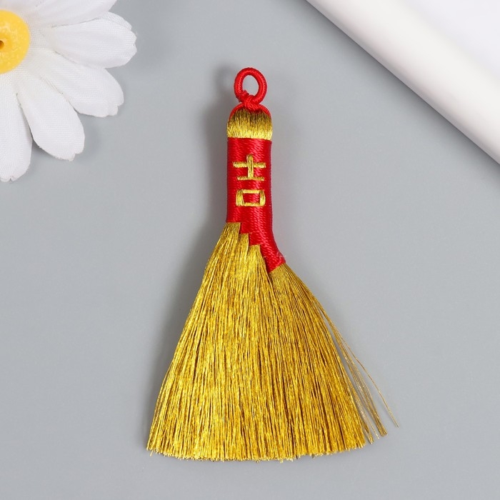 Подвеска текстиль "Золотая метла. Иероглиф - Счастье" 7,5 см