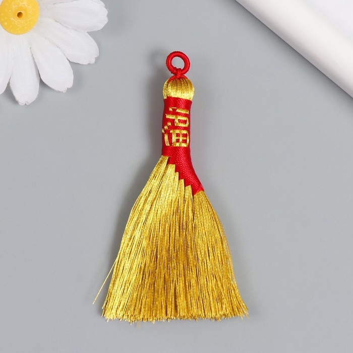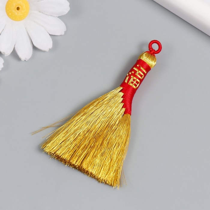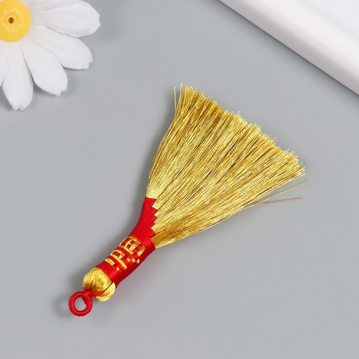 Подвеска текстиль "Золотая метла. Иероглиф - Богатство" 7,5 см