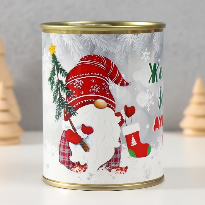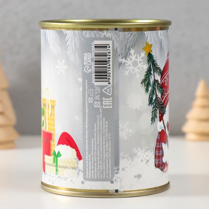 Подарок носки в банке с принтом "Желаю тебе большого душевного тепла" (мужские)