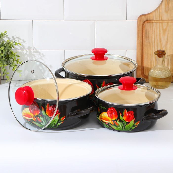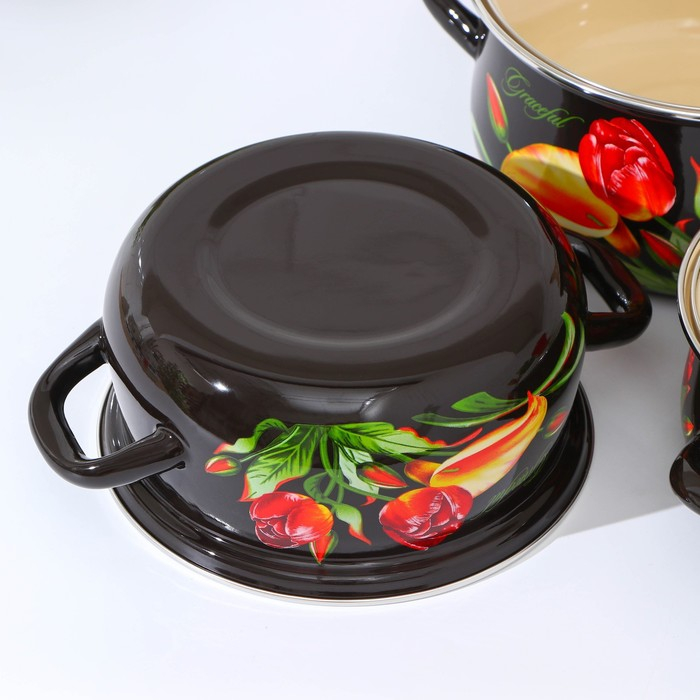Набор эмалированных кастрюль «Грациозный», 3 предмета: 1,5 л, 2 л, 3 л, индукция