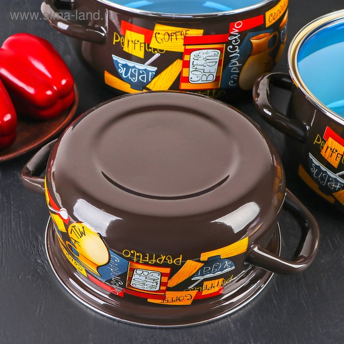 Кастрюли сделаны из качественной стали, покрытой эмалью с декоративным рисунком. Они отлично подходят для приготовления и хранения различных блюд.