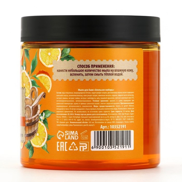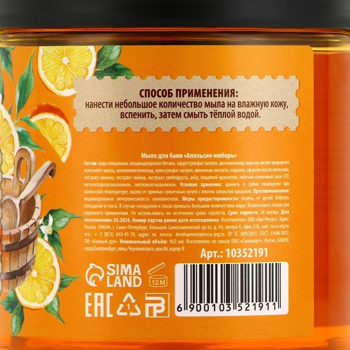 Мыло для бани «Апельсин-имбирь», 450 мл, с экстрактом лимона, лайма и грейпфрута, БАННЫЙ ДУХ