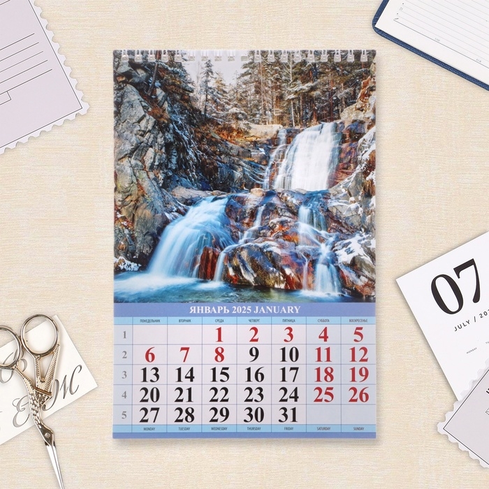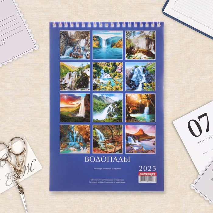 Календарь на пружине без ригеля "Водопады" 2025 год, 17 х 25 см