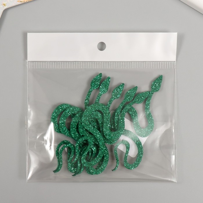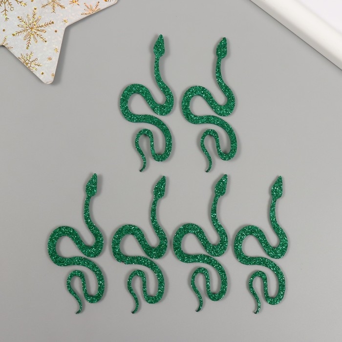 Новогодний декор "Зеленая змея" фоам глиттер, 7 см (Новогодний набор 6 шт)
