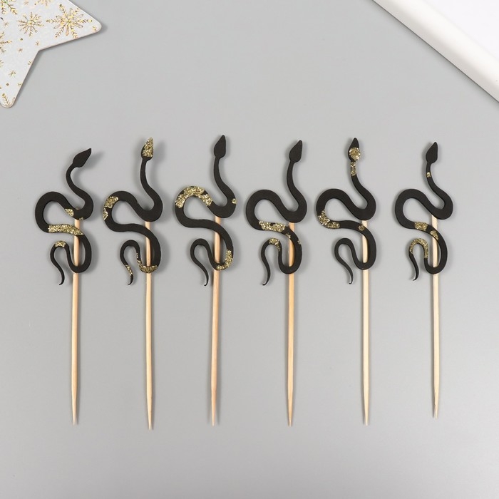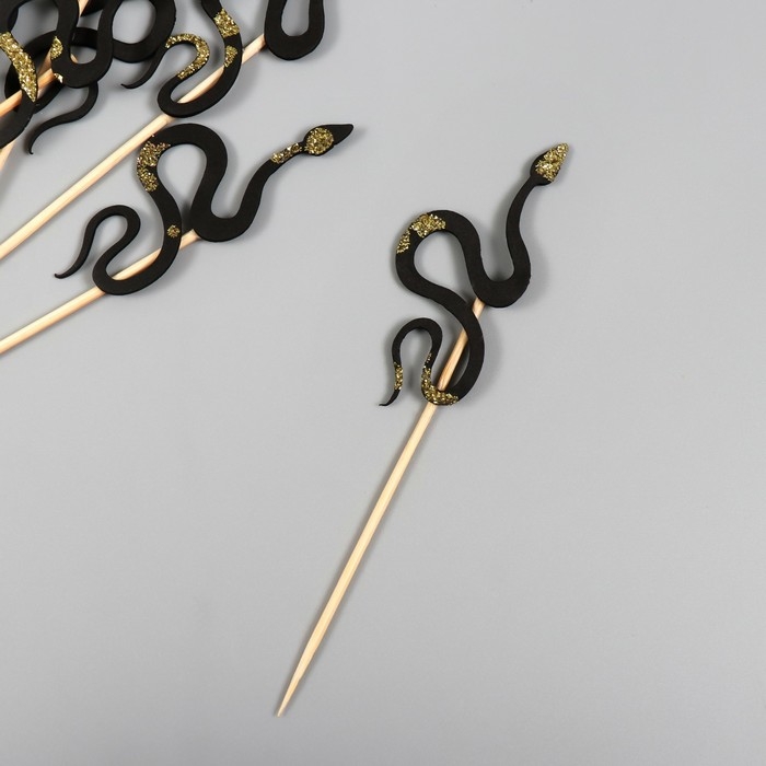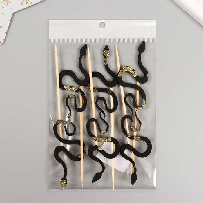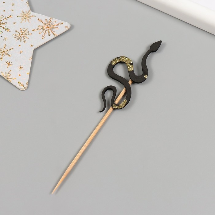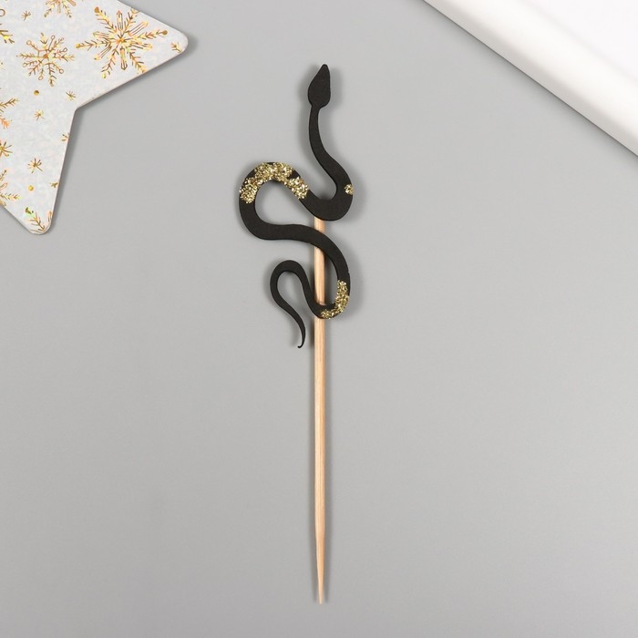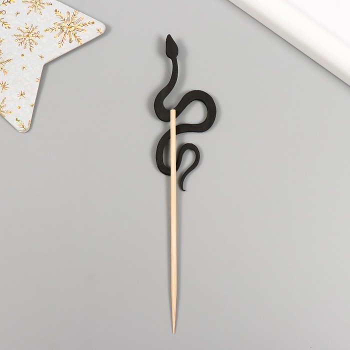 Новогодний топпер для творчества "Чёрная- Блестящая змея" 12.5 см (Новогодний набор 6 шт)