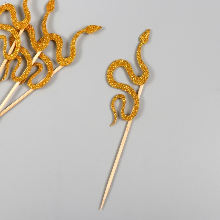 Новогодний топпер для творчества "Золотая- Блестящая змея" 12.5 см (Новогодний набор 6 шт)