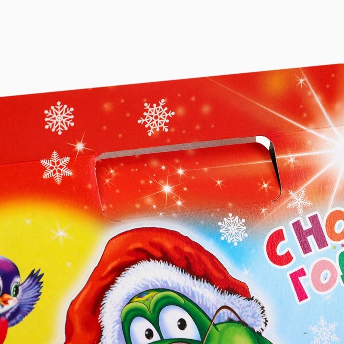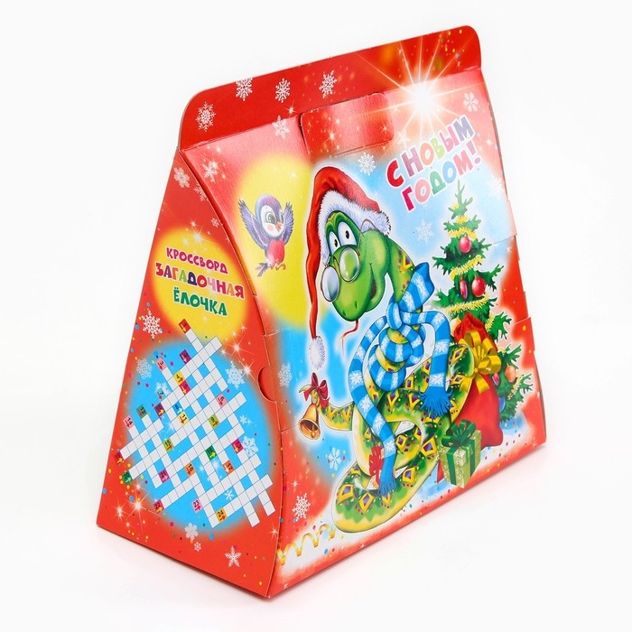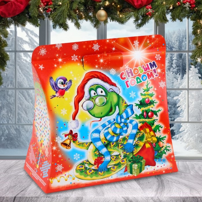 - Коробка выполнена из высококачественного картона, который не только прекрасно удерживает форму, но и гарантирует надёжность и долговечность. Ярко оформленная, она украшена красочными новогодними мотивами. Каждый элемент дизайна продуман до мелочей, чтобы создать ощущение праздника и сказки.