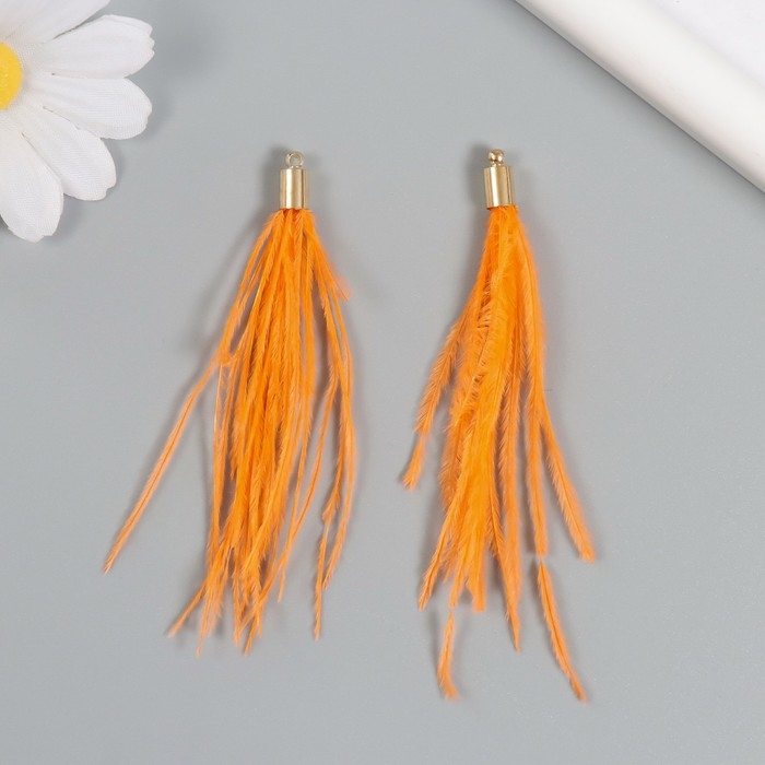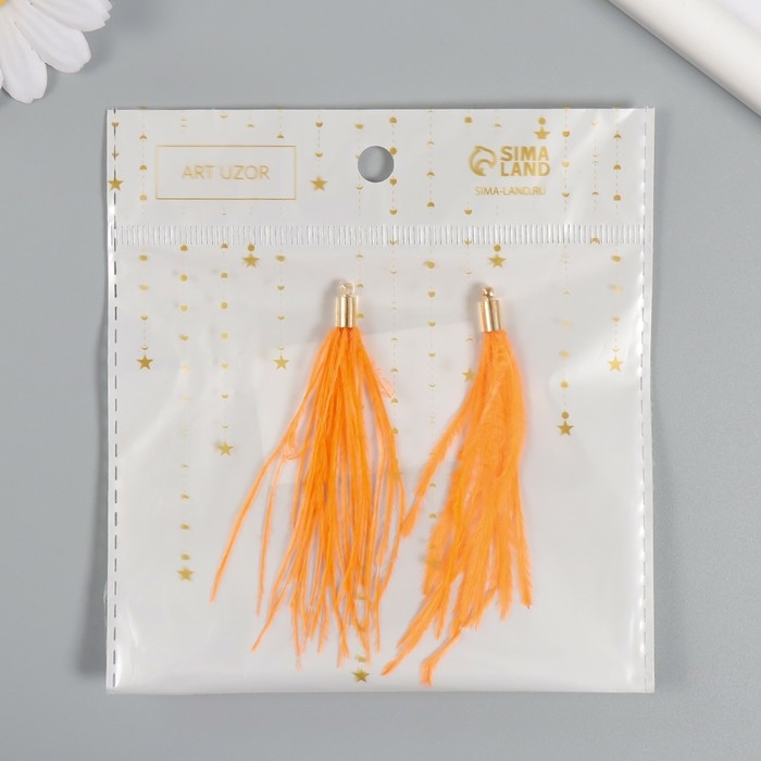Декор для творчества перо "Кисть Страус" набор 2 шт персик 9х0,5 см