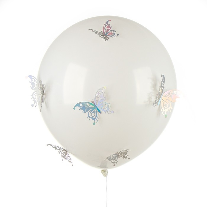 Шар латексный 18" «Разноцветные бабочки», белый, с наклейками