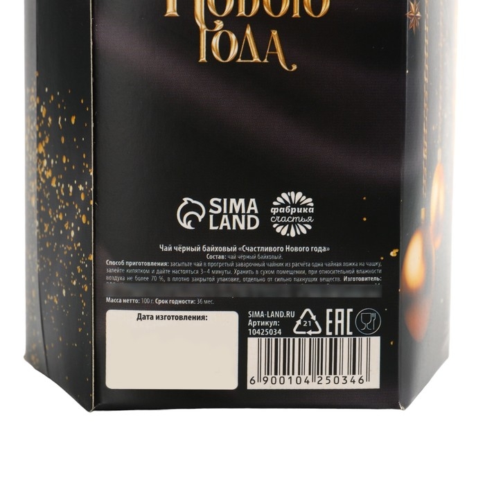 Новый год! Чай чёрный в коробке конфете «Счастливого Нового года», 100 гр.
