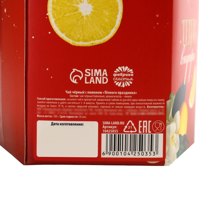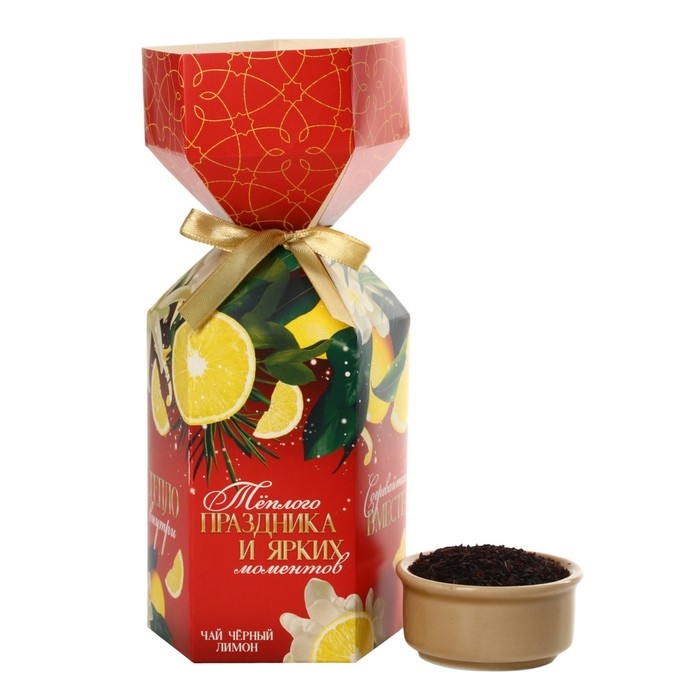 Новый год! Чай чёрный, с лимоном, в коробке конфете «Тёплого праздника» , 100 гр.