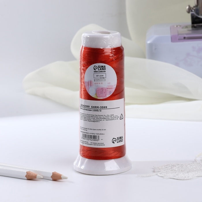 Нить атласная, 120D/2, 700 м, цвет алый №107