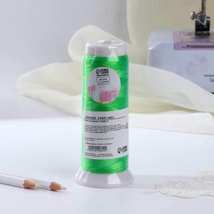 Нить атласная, 120D/2, 700 м, цвет зелёный №758