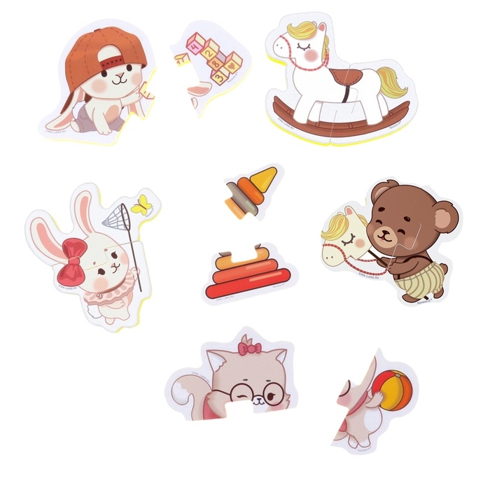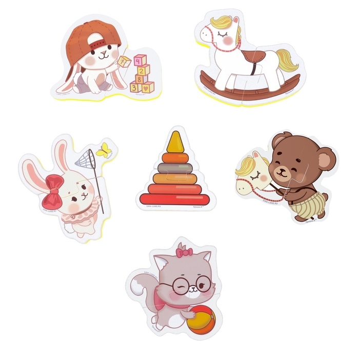 Пазлы для ванны EVA «Малыши и их игрушки», 6 пазл, 12 дет.