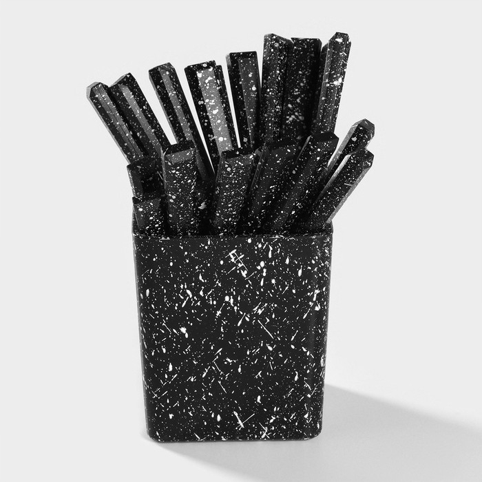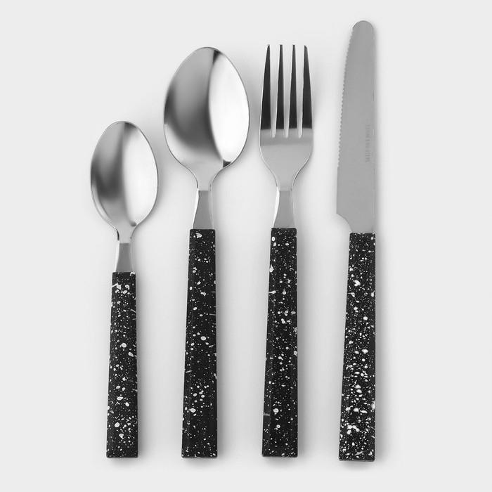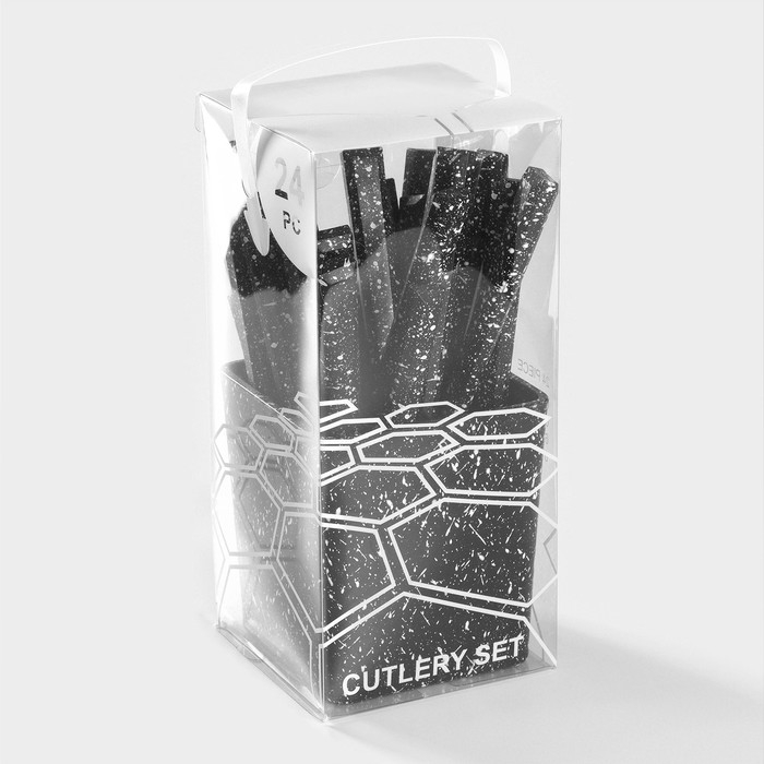 Столовые приборы из нержавеющей стали на подставке «Мрамор чёрный», 24 предмета, толщина 1,2 мм