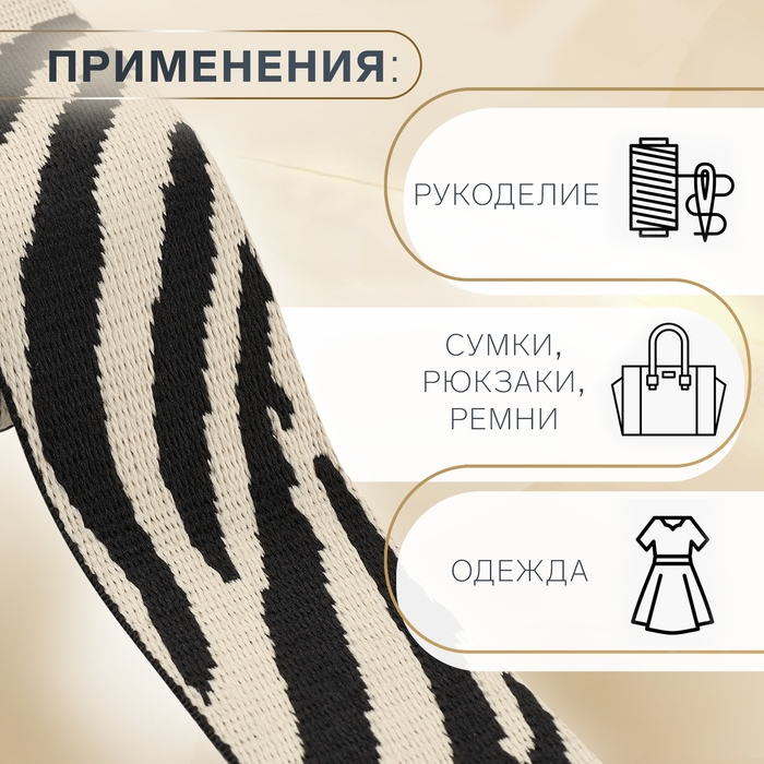 Стропа ременная «Зебра», 38 мм, 3 ± 0,1 м, цвет бежево-чёрный