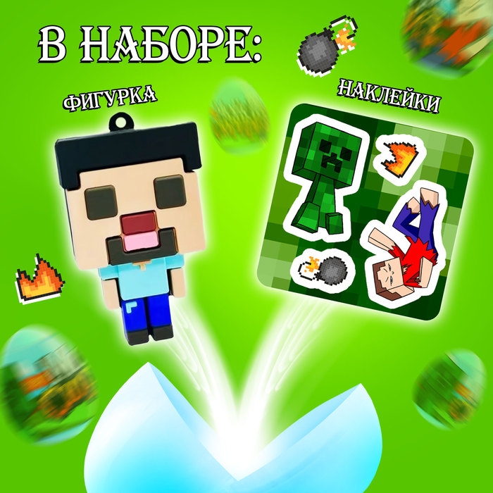 В пластиковом яйце «Монстр-сюрприз» вам попадётся фигурка в виде персонажа из популярной игры и наклейки! Яйцо с сюрпризом — это хороший способ порадовать своего ребёнка без повода, ведь все дети любят сюрпризы!