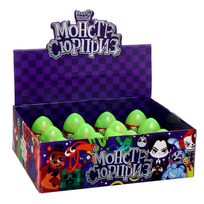 В пластиковом яйце «Монстр-сюрприз» вам попадётся фигурка в виде персонажа из популярной игры и наклейки! Яйцо с сюрпризом — это хороший способ порадовать своего ребёнка без повода, ведь все дети любят сюрпризы!
