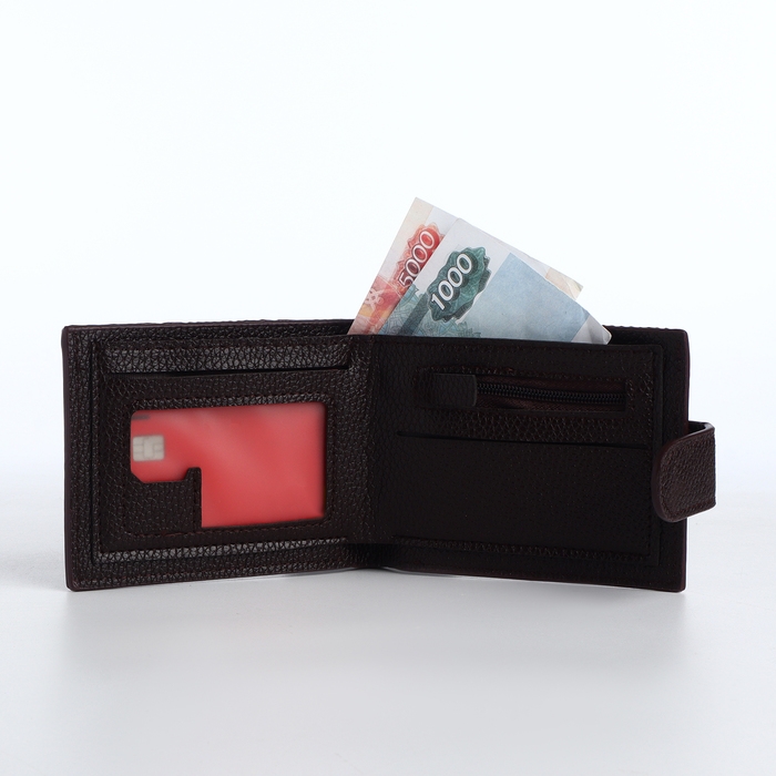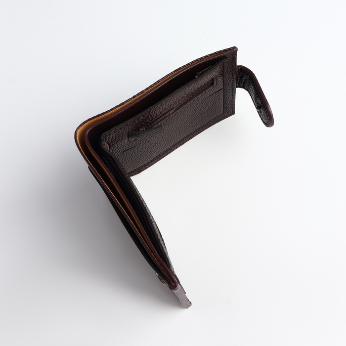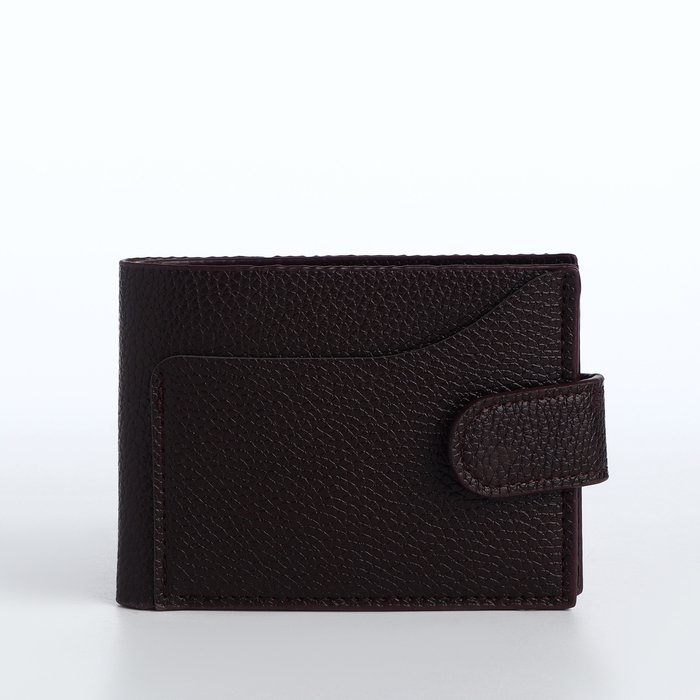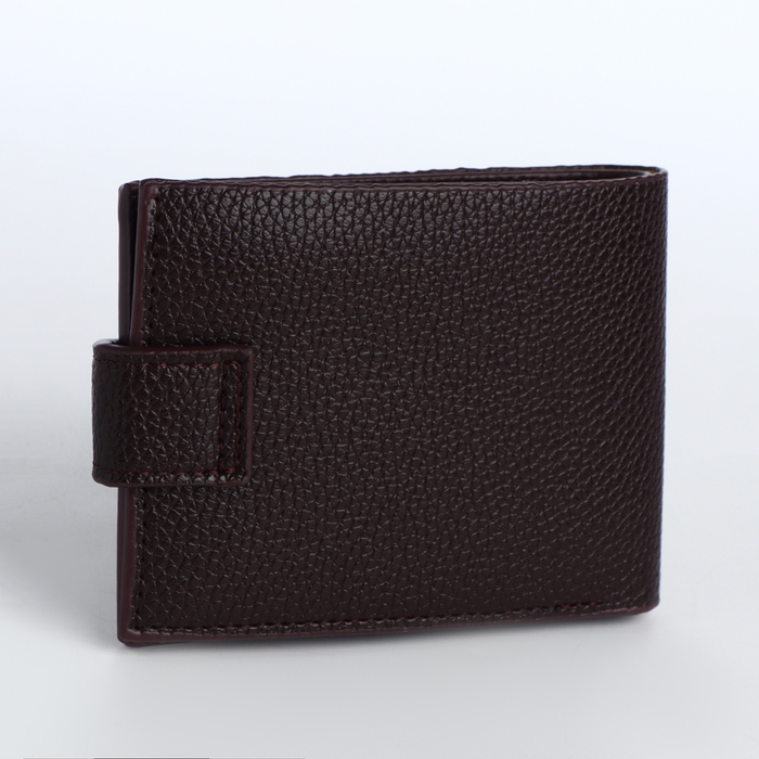 Портмоне мужское на кнопке, отдел для карт, монет, цвет коричневый