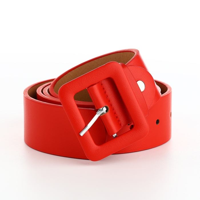 Ремень женский, ширина 4 см, винт, пряжка кожа, цвет красный