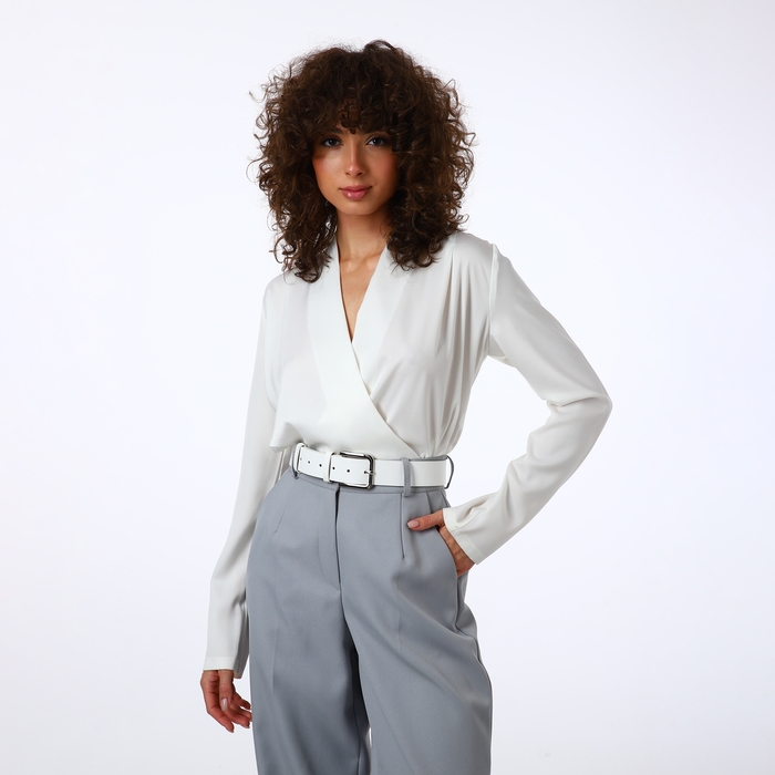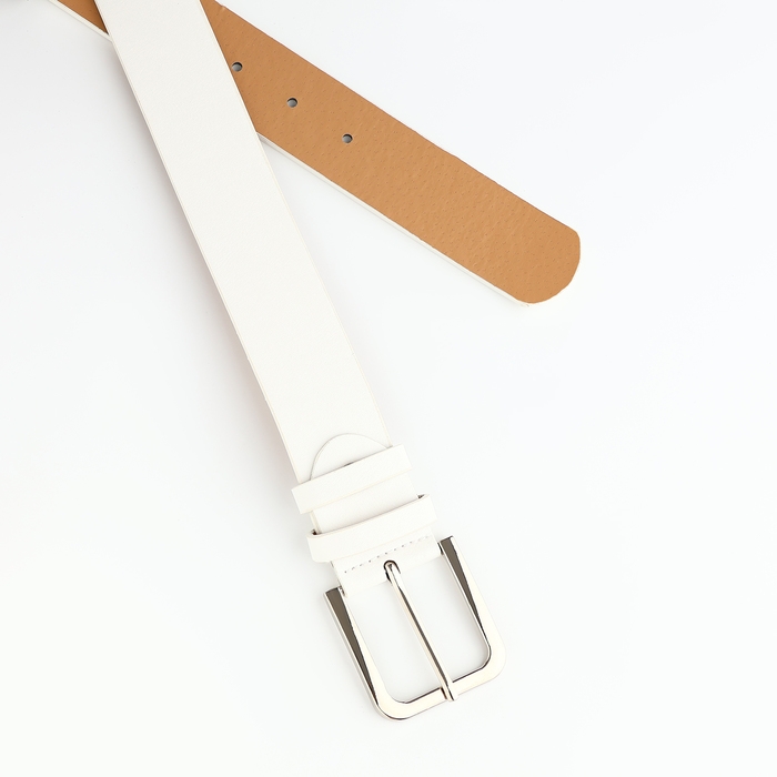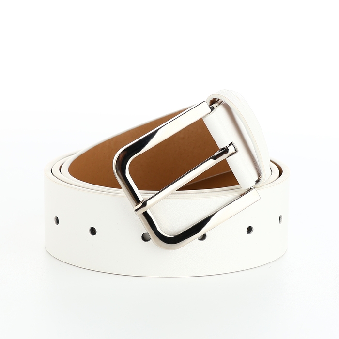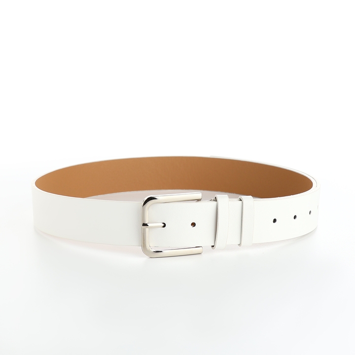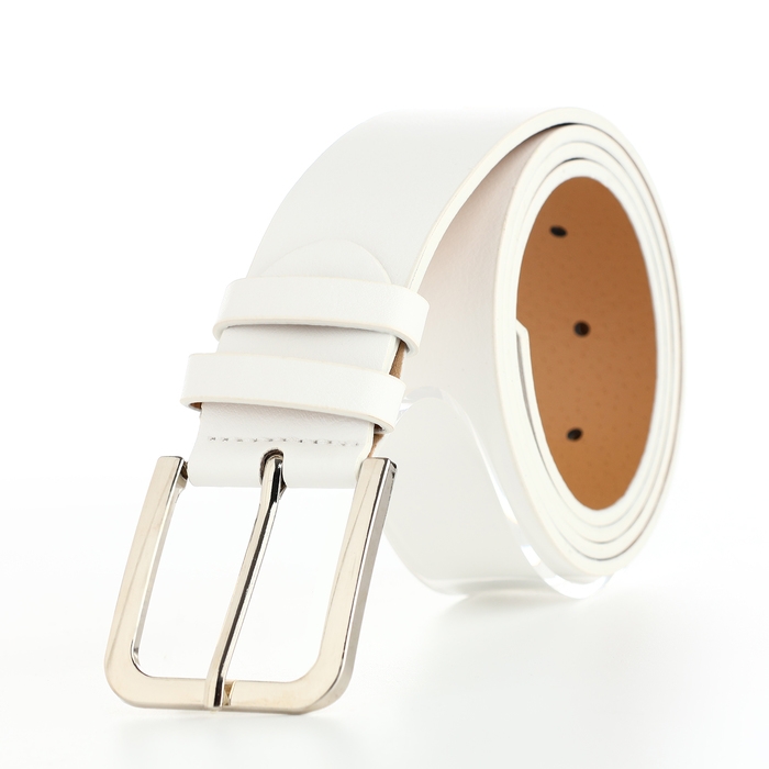 Ремень женский, ширина 4 см, винт, пряжка металл, цвет белый