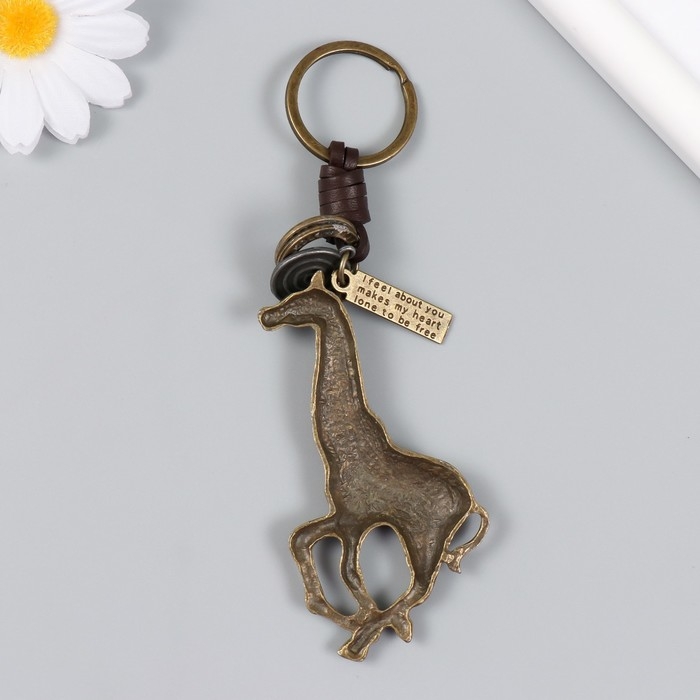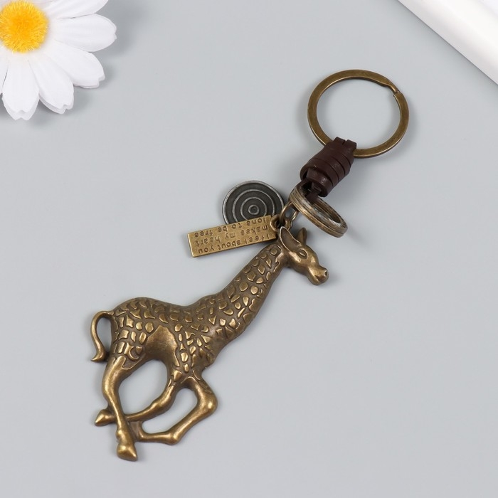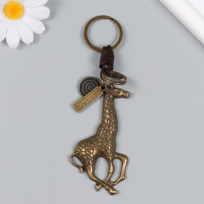 Брелок металл, кожзам "Жираф" бронза, узел 4х13 см