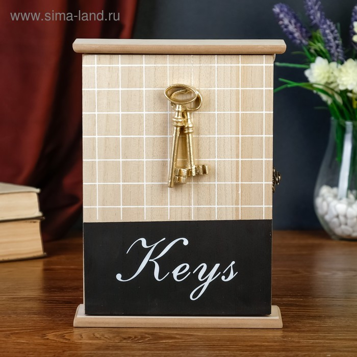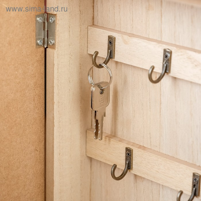 Ключница дерево 5 крючков "Ключи и клетка" 26х19х6 см