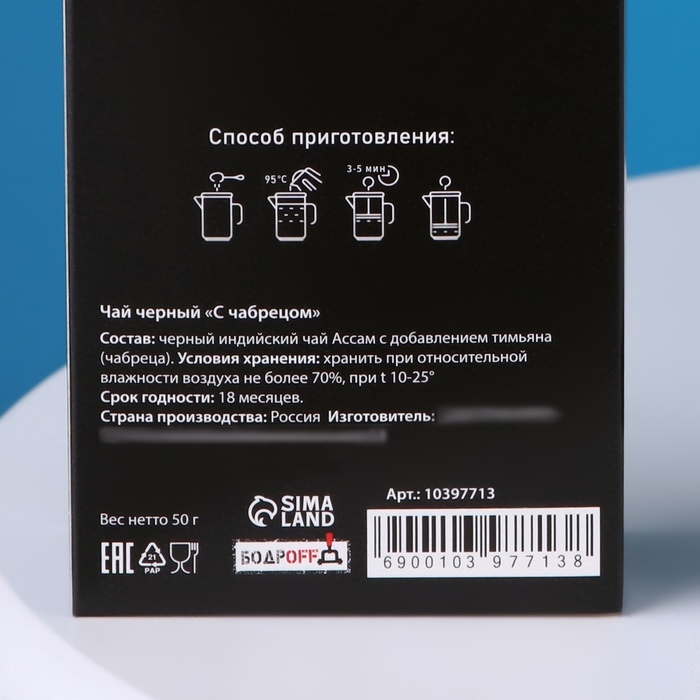 Чай "Настоящий мужчина" - это премиальный чёрный индийский чай Ассам, представленный в элегантной подарочной упаковке. Этот чай отличается своим изысканным вкусом и ароматом, который создаётся благодаря сочетанию тимьяна.