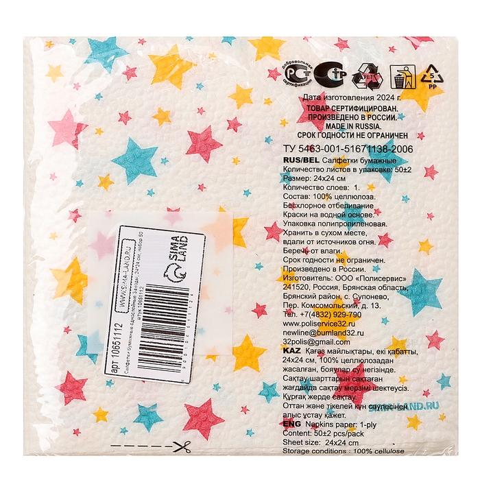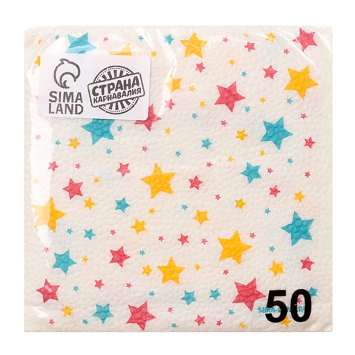 Салфетки бумажные однослойные "Звёзды" 24х24 см, набор 50 шт.