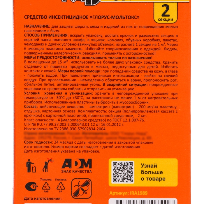 Секция от моли "Nadzor" с запахом лаванды, 2 шт