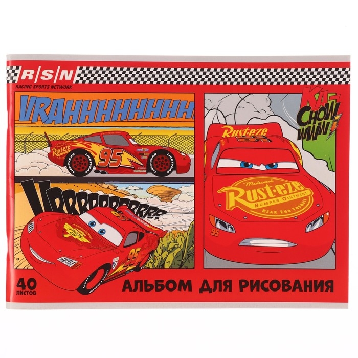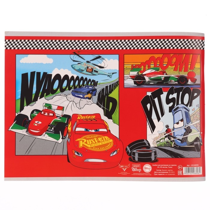 Альбом для рисования на скрепке, А4, 40 листов, Тачки