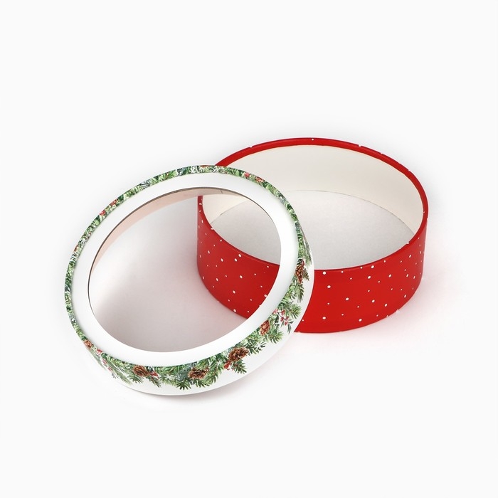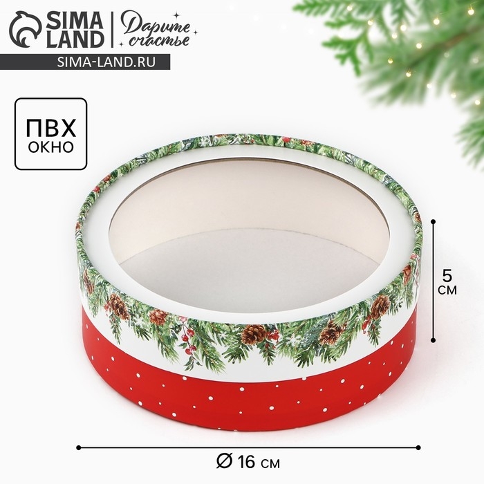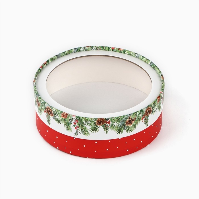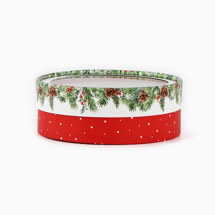 Коробка для макарун тубус с окном «Новогодняя ботаника», 16 х 16 х 5 см, Новый год
