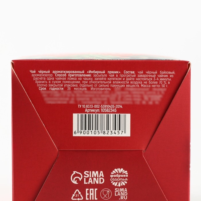 Новый год! Чай чёрный в коробке-домик «Ярких моментов», со вкусом: Имбирный пряник, 50 г.