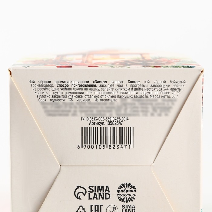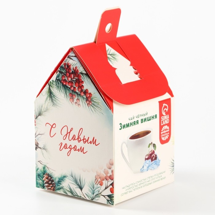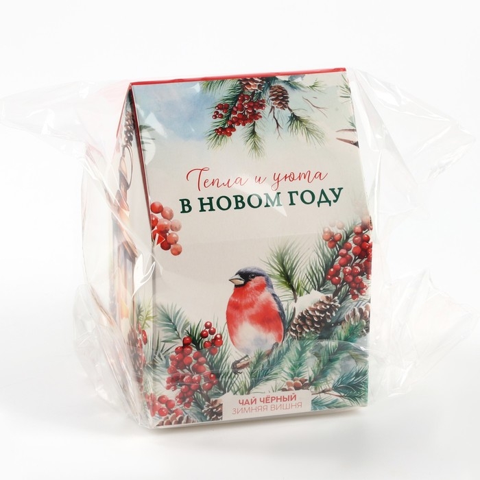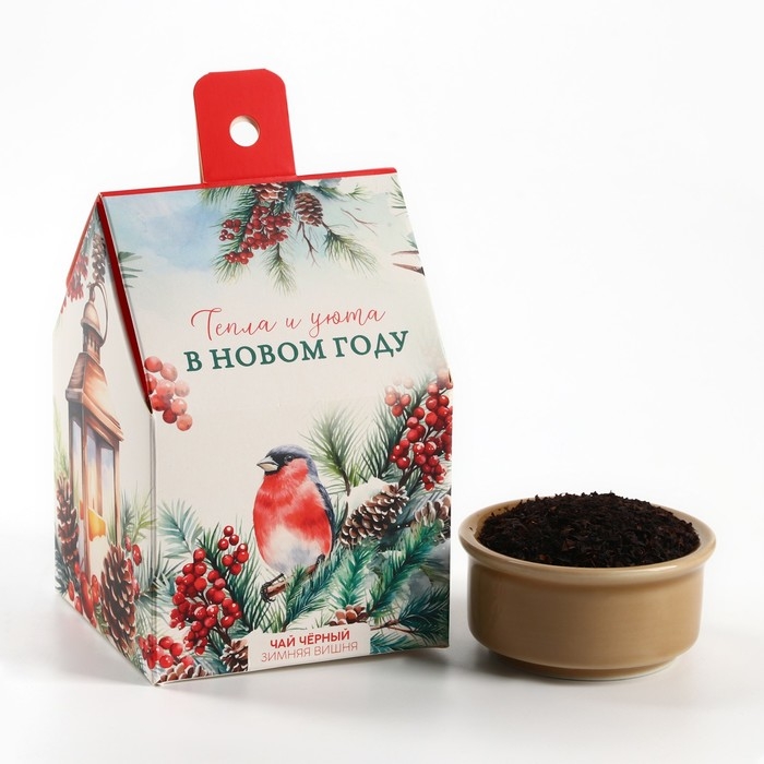 Новый год! Чай чёрный в коробке-домик «Тепла и уюта», со вкусом: Зимняя вишня, 50 г.