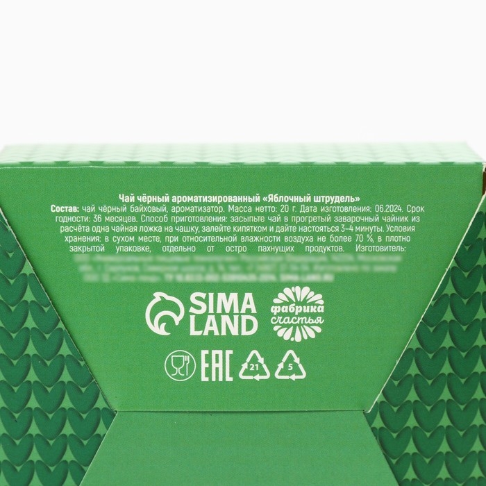 Чай чёрный, в коробке - шкатулке, со вкусом: Яблочный штрудель, «Тёплых праздников», 20 г.