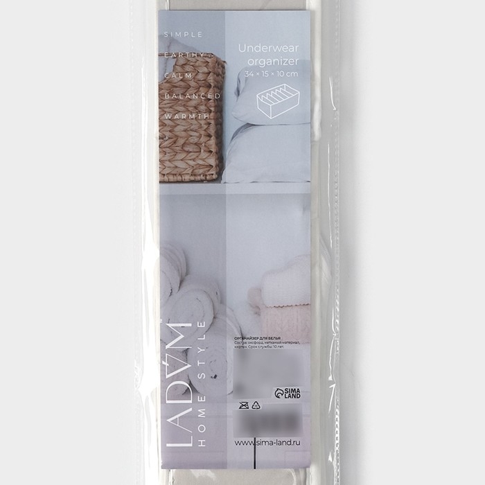 Органайзер для хранения белья LaDо́m, 6 ячеек, 34×15×10 см, цвет серый