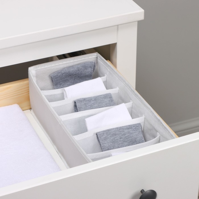 Органайзер для хранения белья Доляна «Смарт», 8 ячеек, 28,5×13,5×10 см, цвет серый