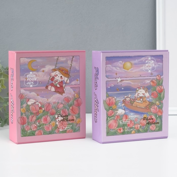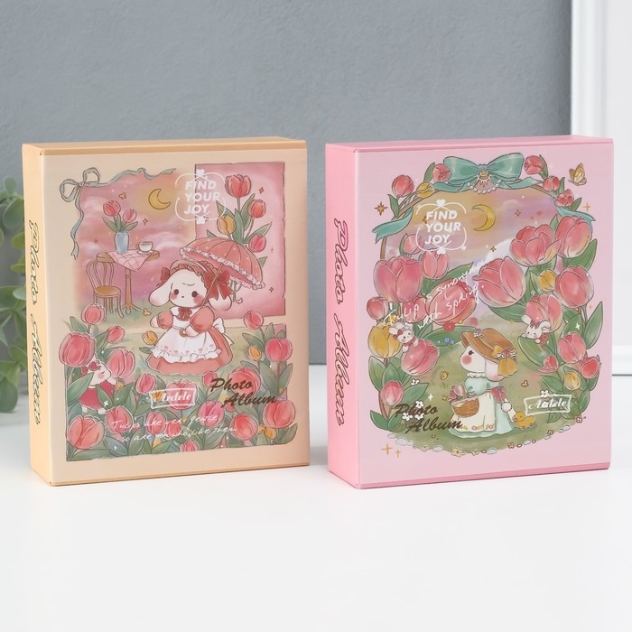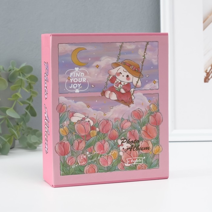 Фотоальбом на 40 фото 10х15 см "Зайка в тюльпанах" в коробке МИКС 4,5х14х17 см