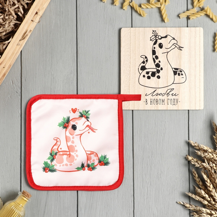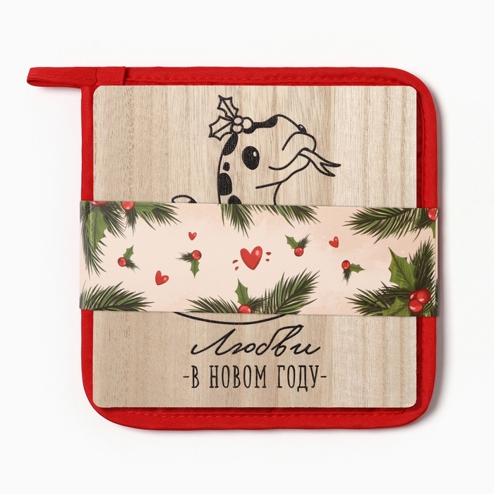 Новый год. Набор кухонный Любви в новом году: подставка 15*15 см, прихватка 17*17см