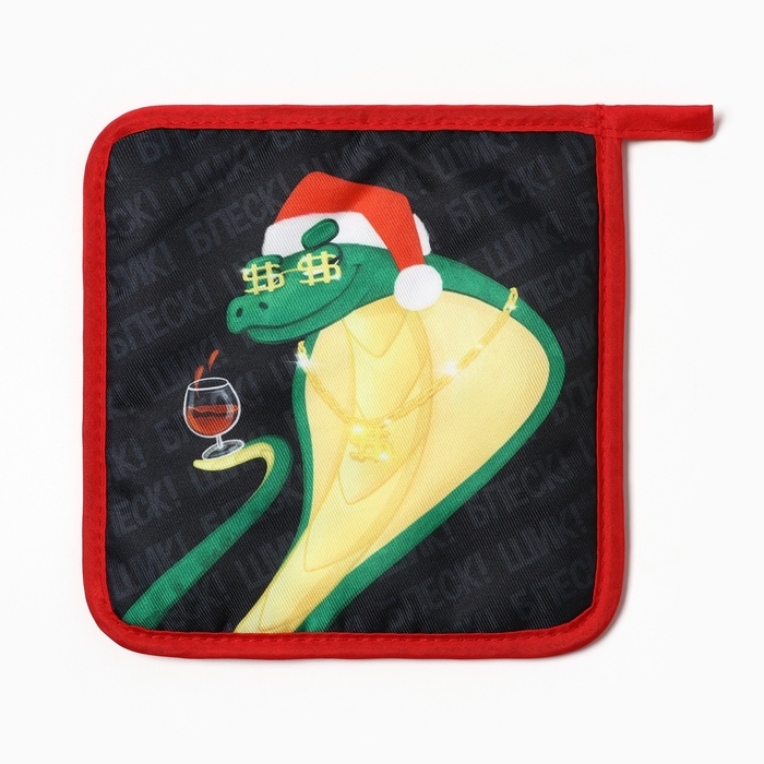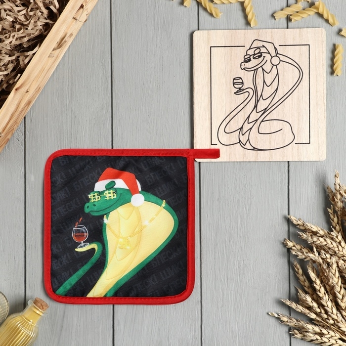 Новый год. Символ года. Змея. Набор кухонный Змея с бокалом: подставка 15*15 см, прихватка 17*17см