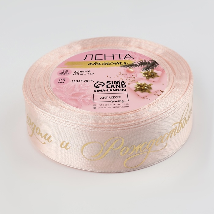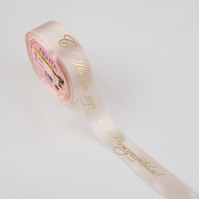 Новый год! Лента атласная с тиснением «С Новым годом и Рождеством», 25 мм, 23 ± 1 м, цвет персиковый