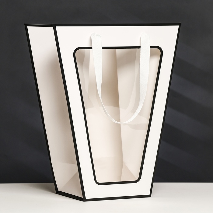 Пакет-переноска для цветов 18 × 14 × 35 х 28 см, белый с каймой
